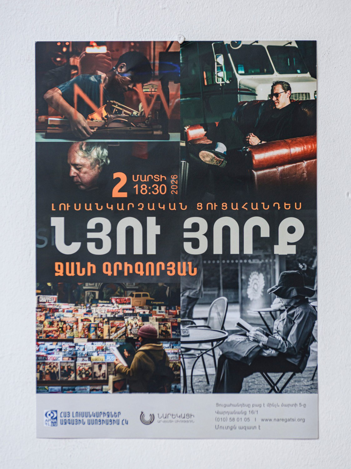 2026 թվականի մարտի 02-ին ՆԱՐԵԿԱՑԻ արվեստի միությունում տեղի ունեցավ ««ՀԱՅ ԼՈՒՍԱՆԿԱՐԻՉՆԵՐ » ազգային ասոցիացիա» (ՀԼԱԱ) -ի կողմից նախաձեռնած լուսանկարիչ Ջանի Գրիգորյանի՝ «Նյու Յորք» խորագիրը կրող լուսանկարների ցուցահանդեսը: